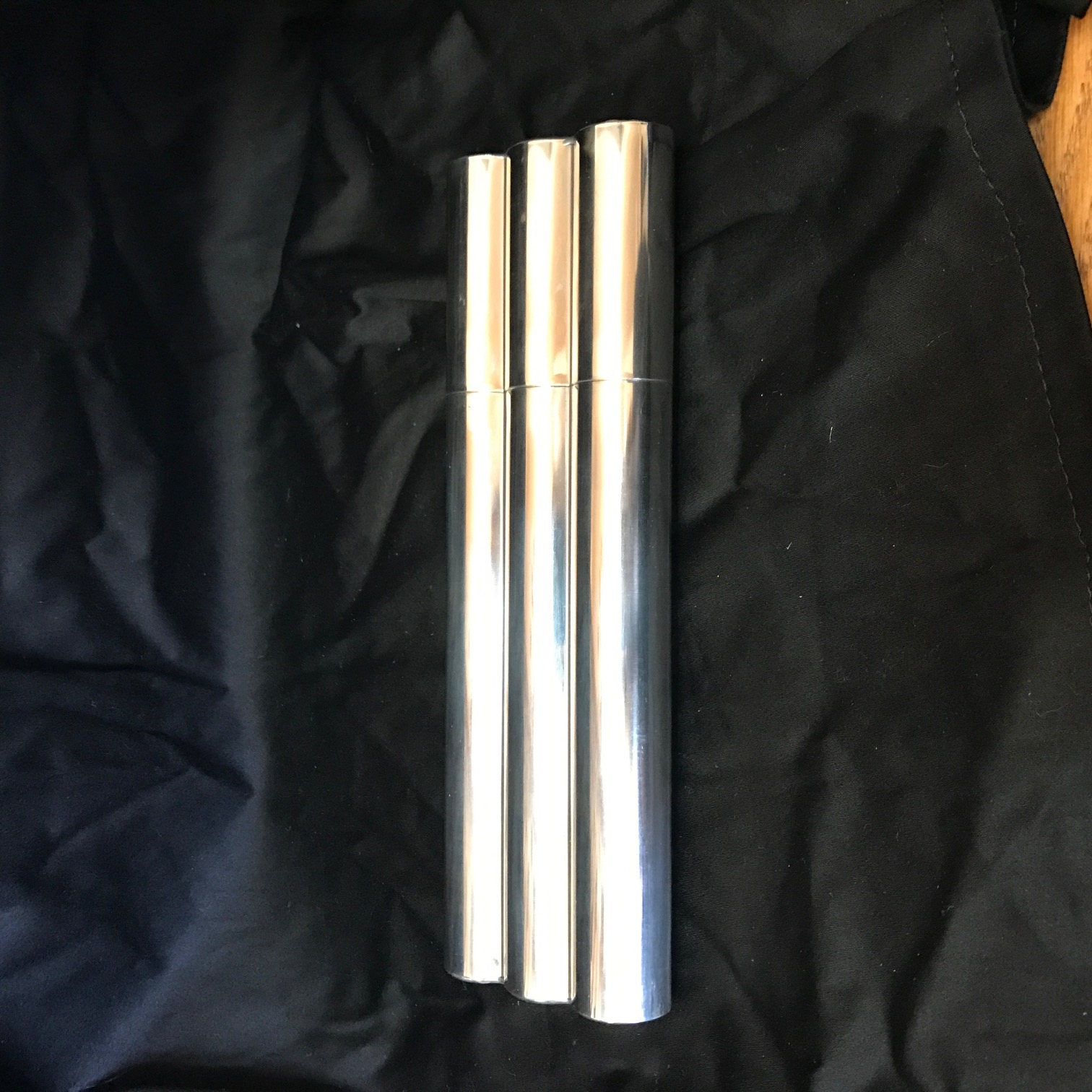 The celebration flask! It holds 2 cigars and 2 shots of your favorite beverage! Stainless Steel