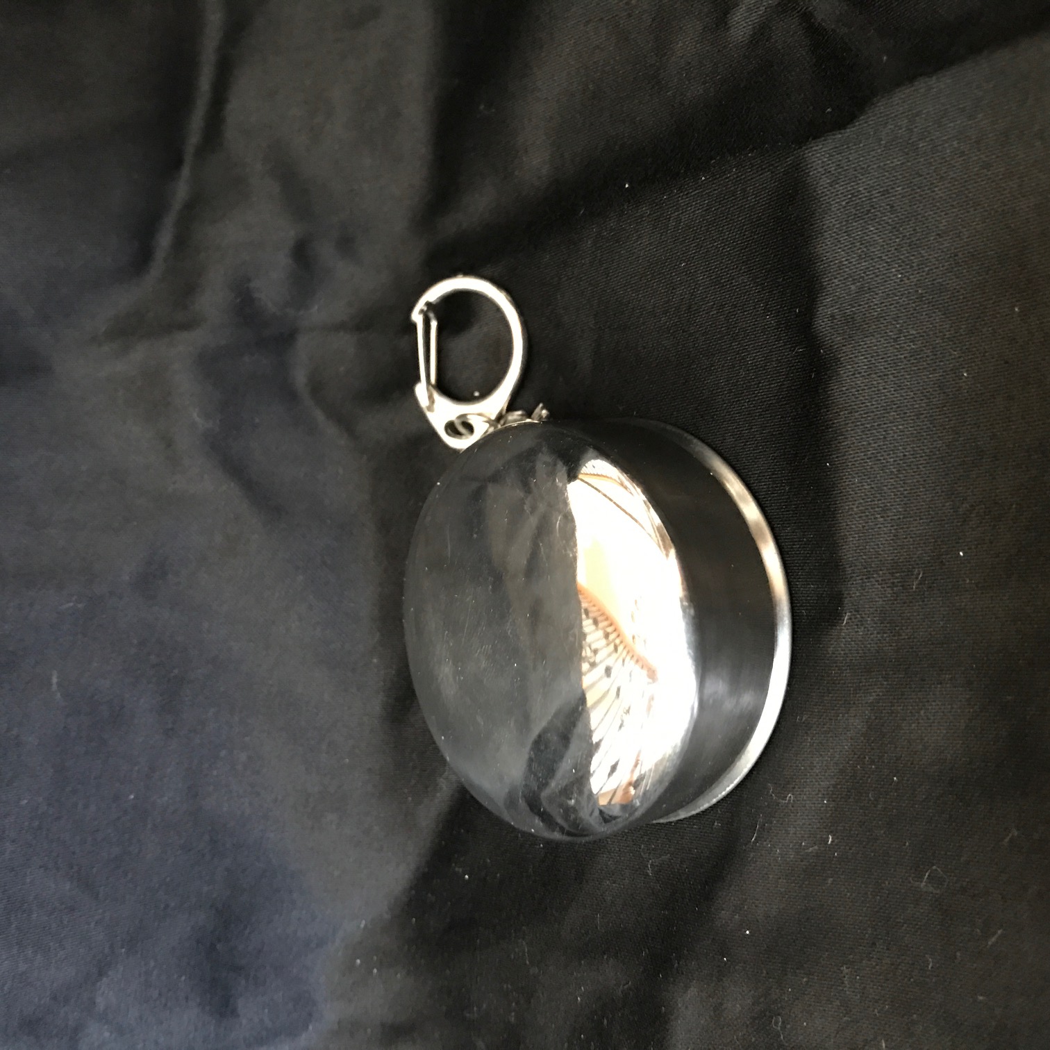 Collapsible stainless steel shot glass that turns into a keychain! Perfect for drinks on the go.