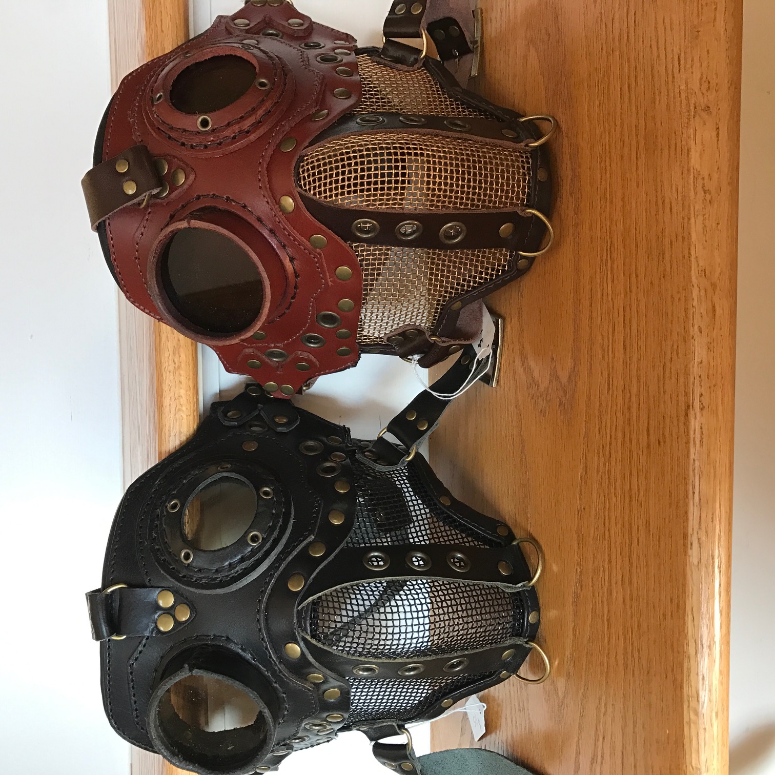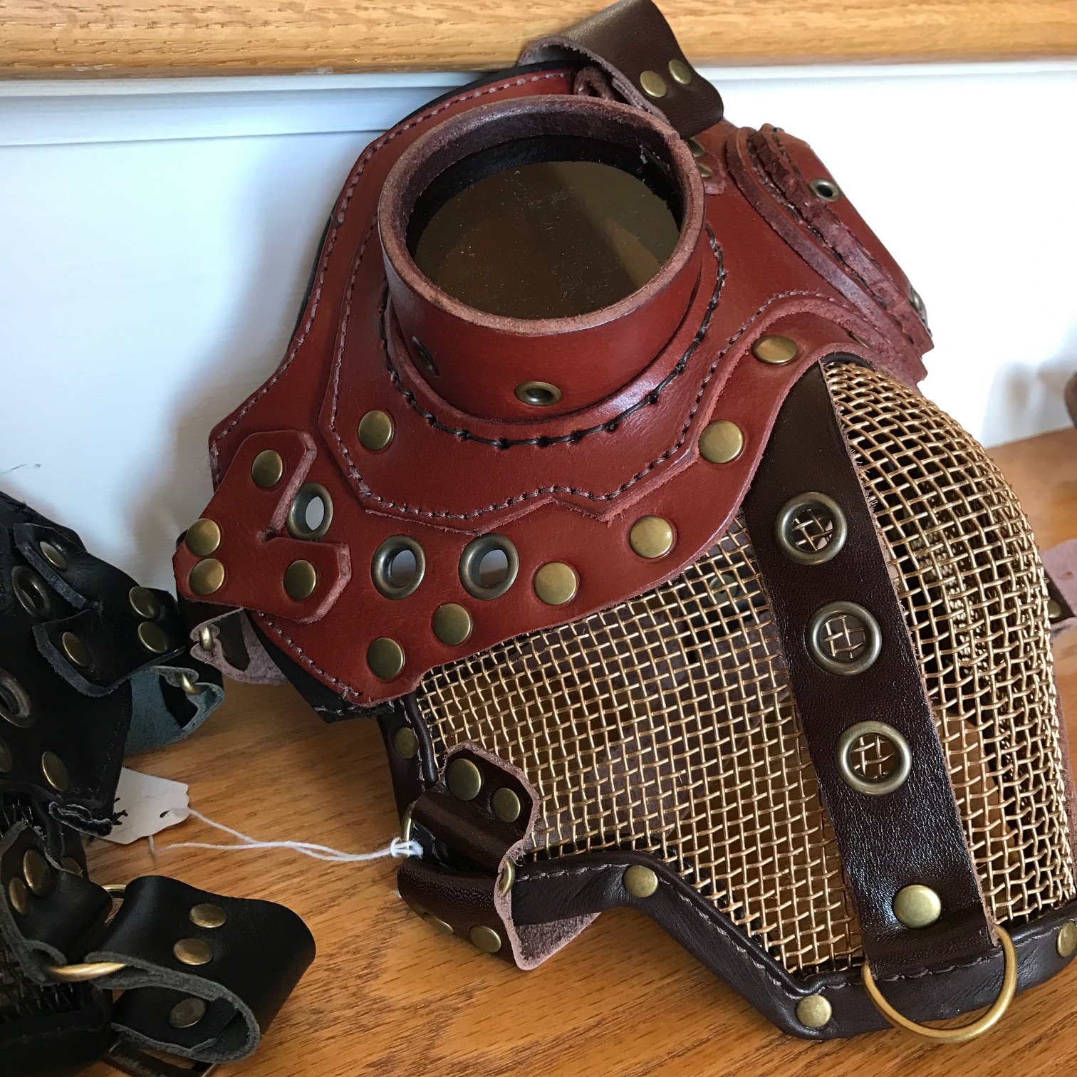Handmade leather and brass Mad Mask in your choice of three colors: Dark Brown, Light Brown, Black.