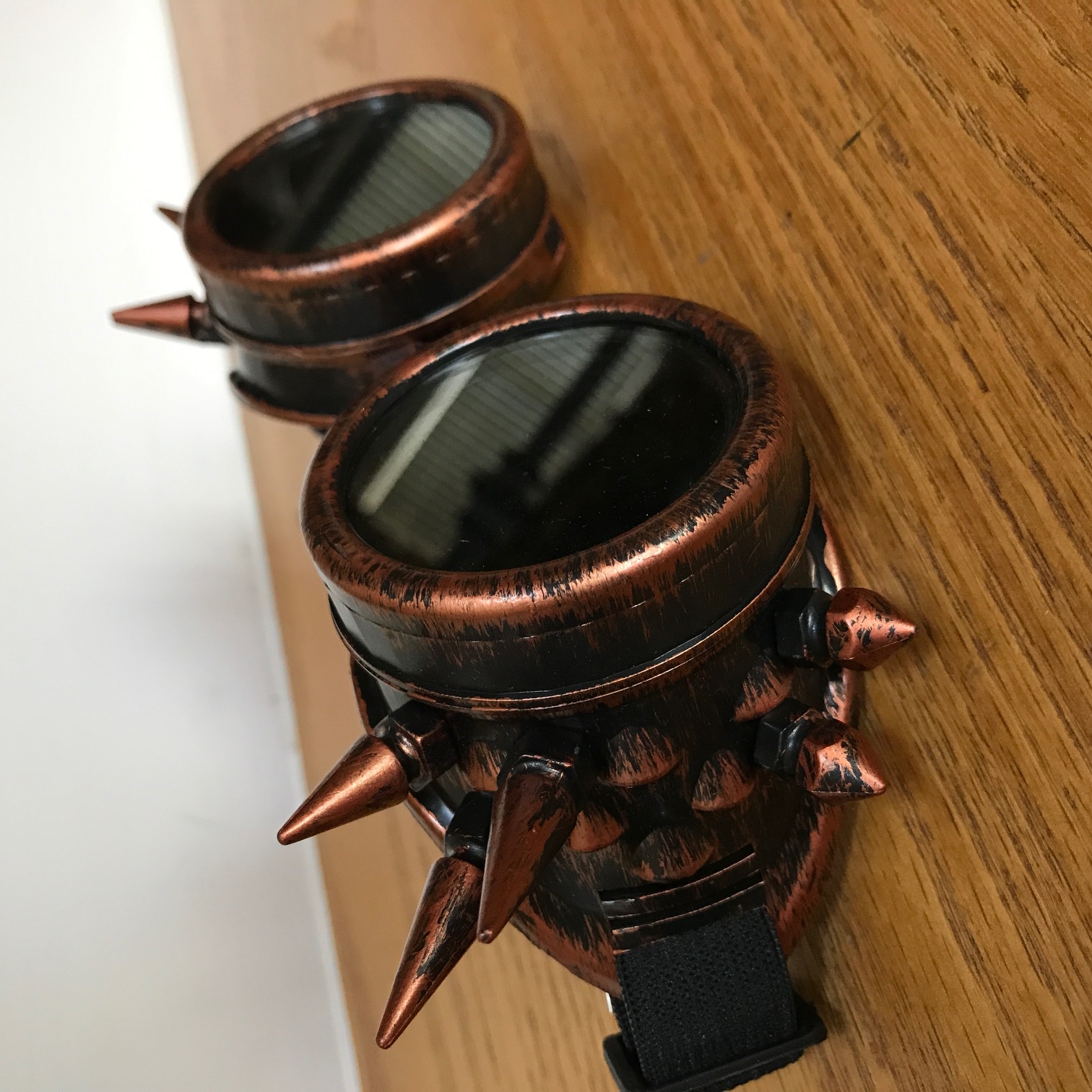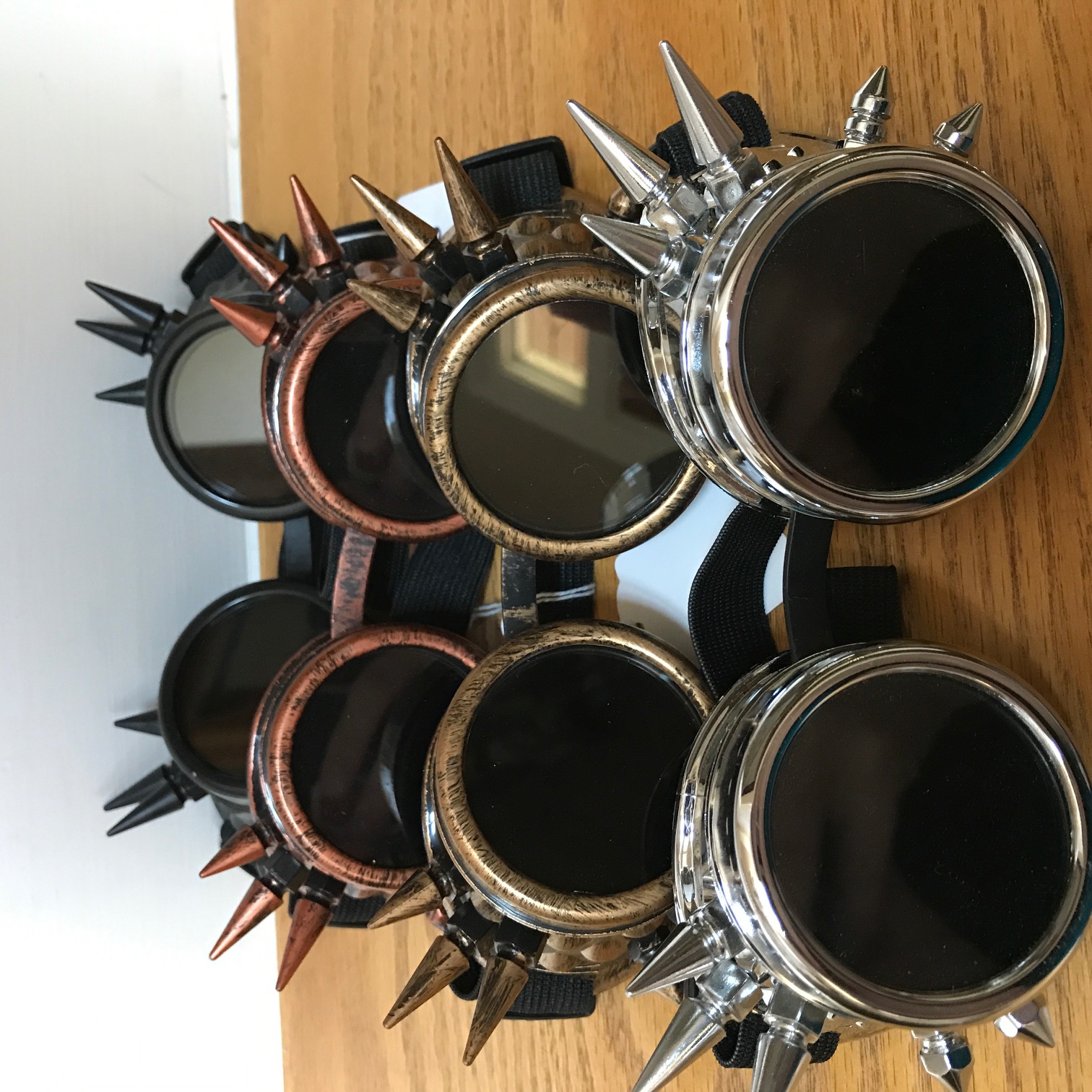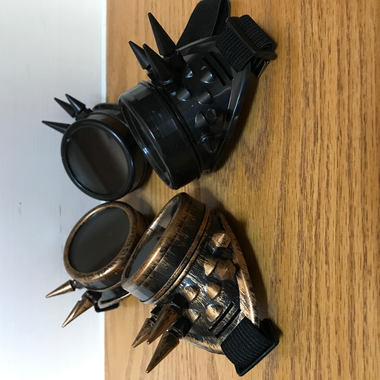 These goggles are perfect for all of your costuming needs! We offer four different colors for the body of the goggles: Black, Silver, Antique Copper, and Antique Gold.
