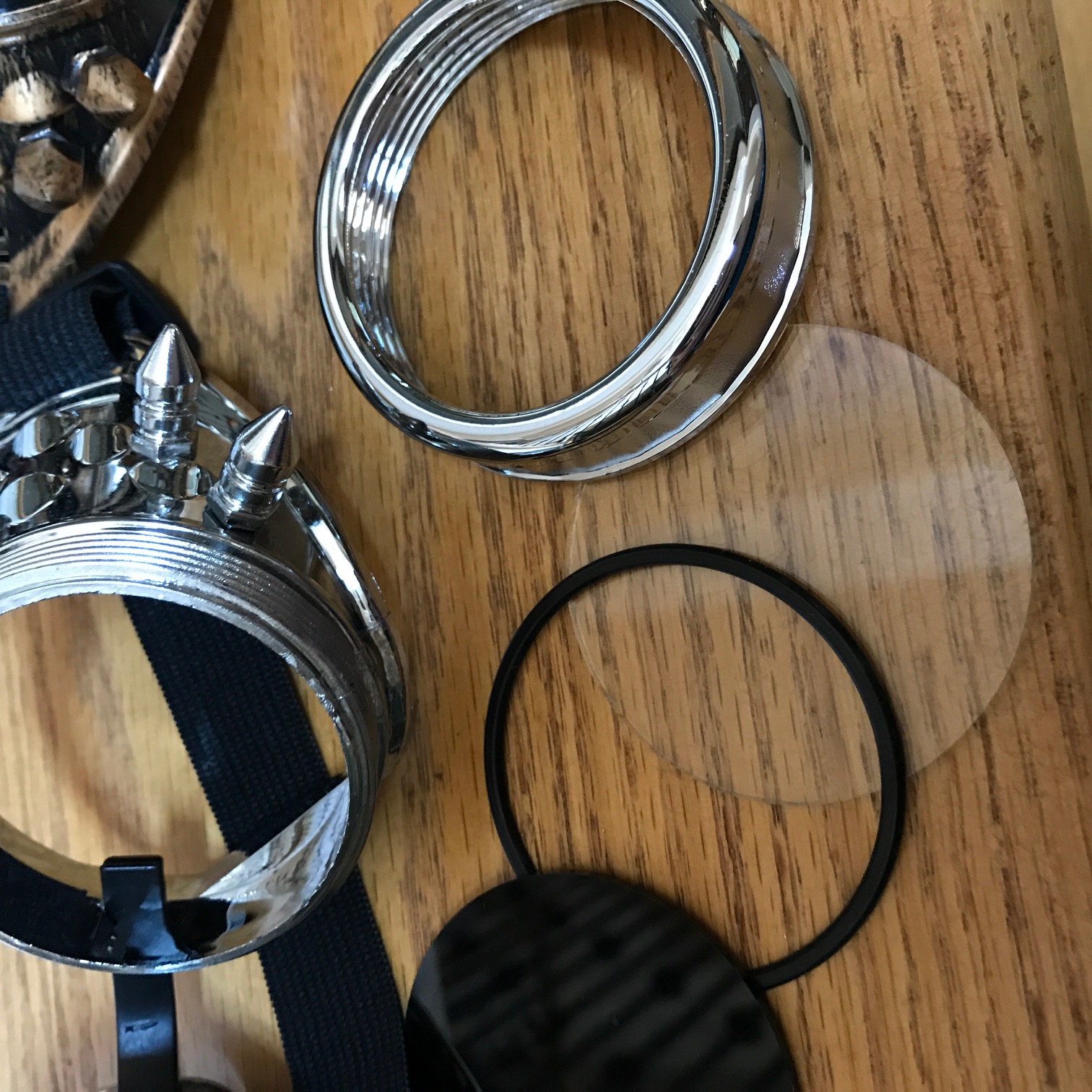 Our goggles also include two sets of lenses. If you simply unscrew the eyepiece, you can see the clear glass and the black welding glass, along with a small rubber ring for protection. You can leave both sets in, or take the dark lenses out to see through them!