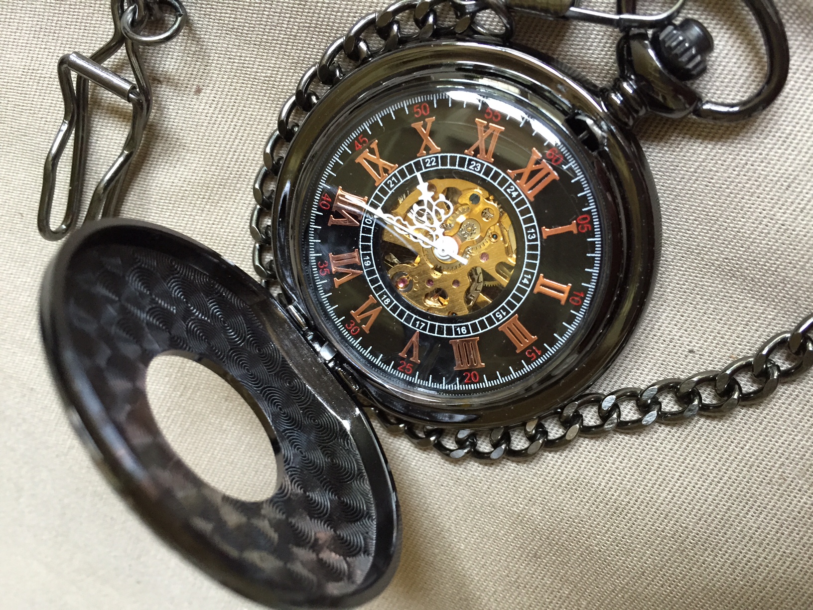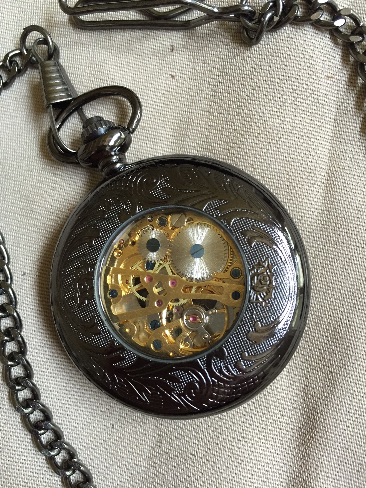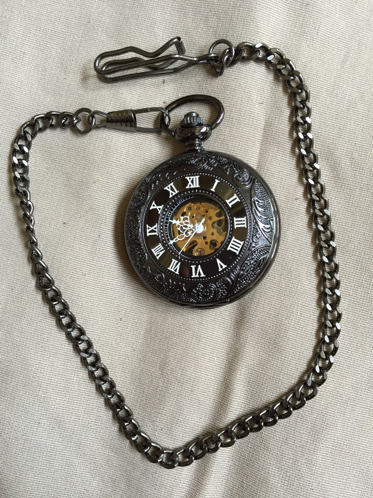 Vintage style pocket watch Fully mechanical/wind up (NOT battery powered) Skeleton style (see through rear)
