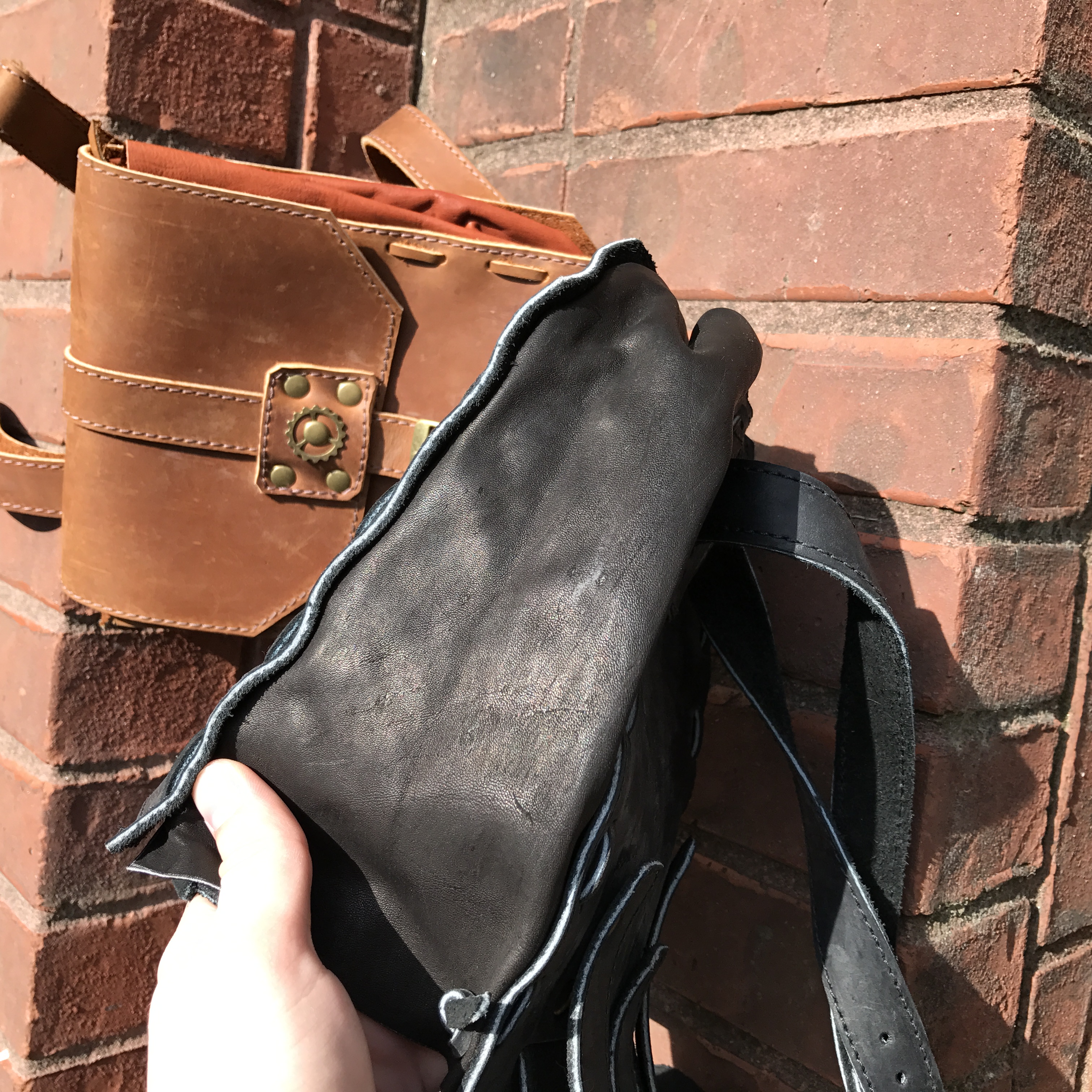 The bags come in Dark Brown, Black, or Light Brown (pictured is Black and Light Brown) and have a buckle to keep them shut. The pouch of the bag comes folded flat, but opens to a little over 3 inches wide to hold quite a bit of things if you so desire. These bags are large enough to even hold an iPad Mini!