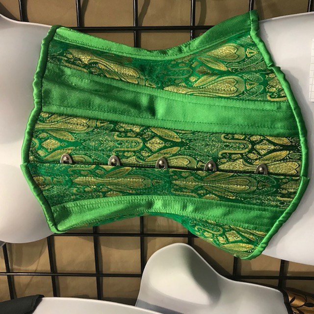 Our corsets have 20 spiral steel bones for comfort and form, and an additional 6 spring steel stays that support the grommets and busk. They have three layers of fabric (two inner layers of high-quality cotton twill for a breathable fit and wicking away any moisture, and an outer fashion fabric). The middle fabric layer is laminated to the outer fabric for added strength and a smoother finish. There is a waist tape for extra support at the waist line. The laces are extra long and very strong for a tight but comfortable fit.