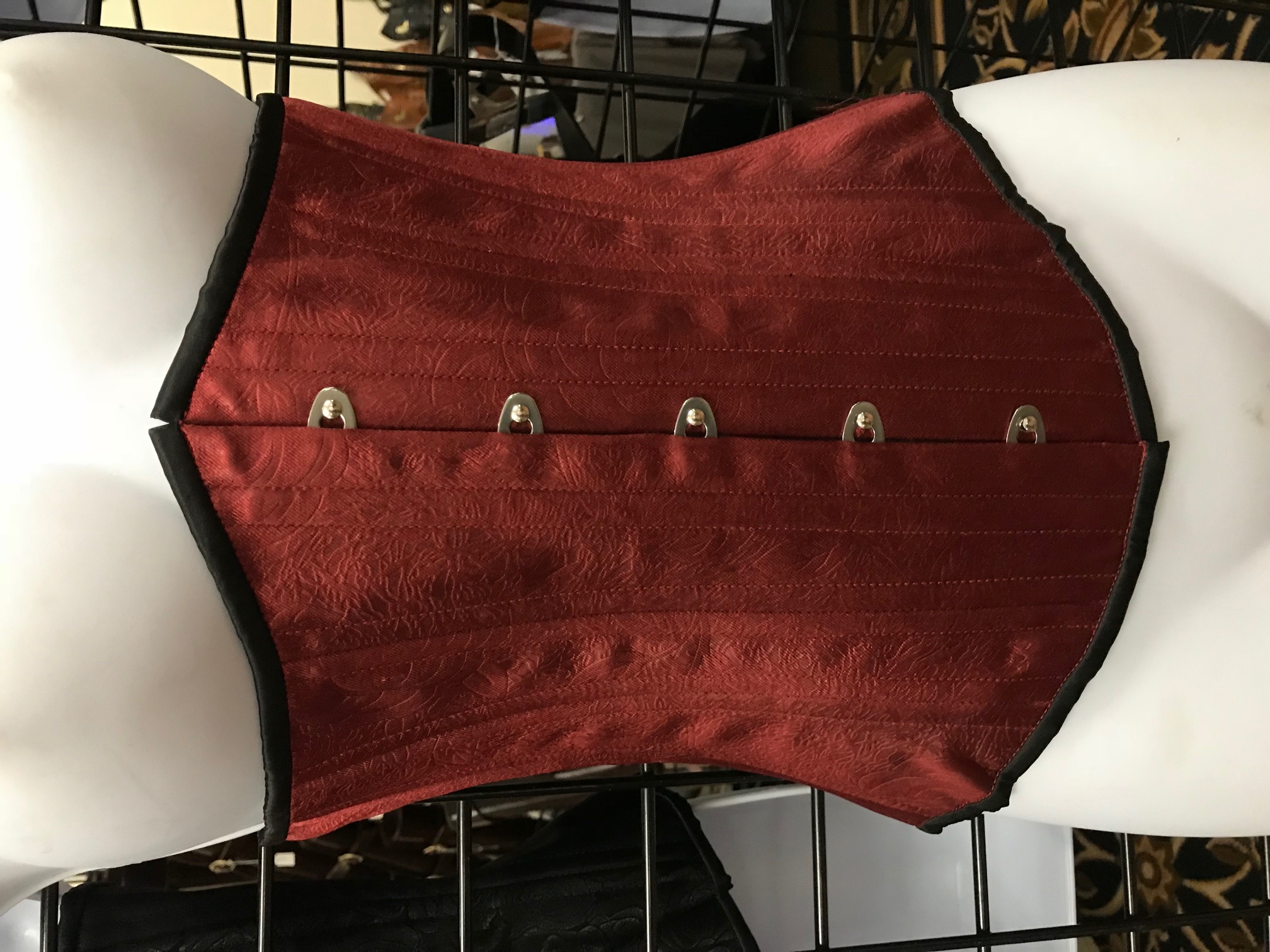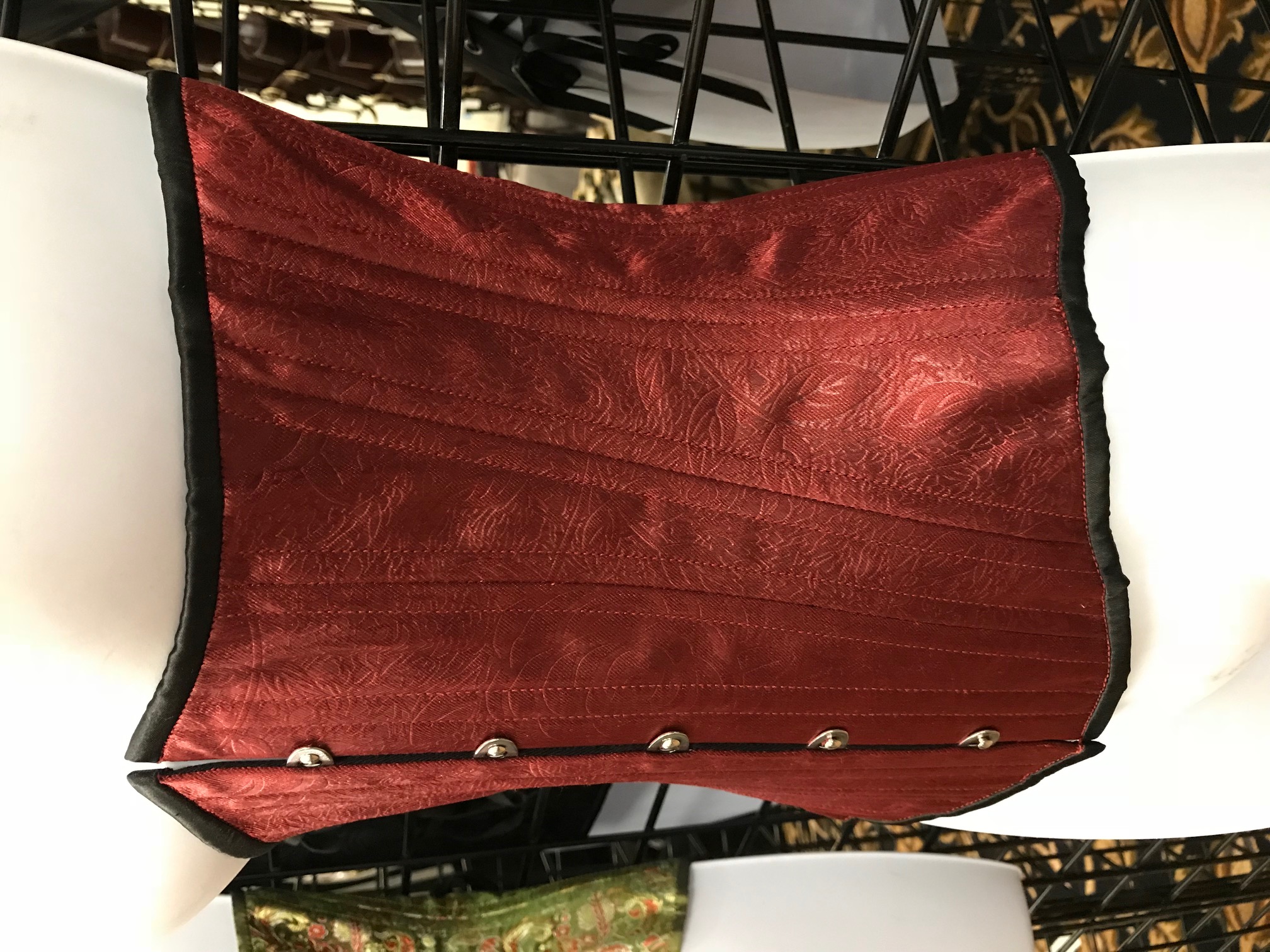Our corsets have 20 spiral steel bones for comfort and form, and an additional 6 spring steel stays that support the grommets and busk. They have three layers of fabric (two inner layers of high-quality cotton twill for a breathable fit and wicking away any moisture, and an outer fashion fabric). The middle fabric layer is laminated to the outer fabric for added strength and a smoother finish. There is a waist tape for extra support at the waist line. The laces are extra long and very strong for a tight but comfortable fit.