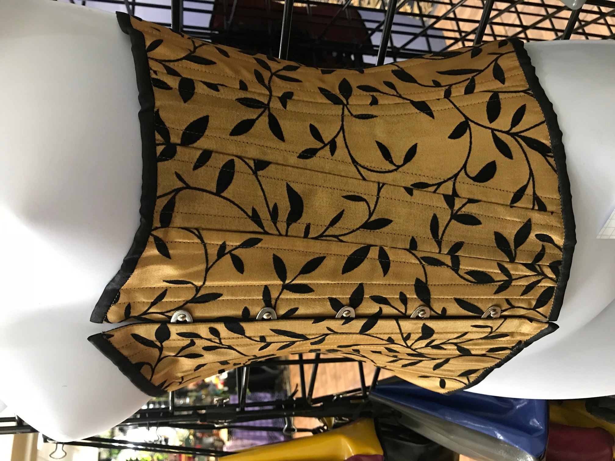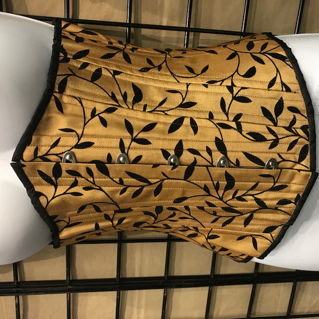 Our corsets have 20 spiral steel bones for comfort and form, and an additional 6 spring steel stays that support the grommets and busk. They have three layers of fabric (two inner layers of high-quality cotton twill for a breathable fit and wicking away any moisture, and an outer fashion fabric). The middle fabric layer is laminated to the outer fabric for added strength and a smoother finish. There is a waist tape for extra support at the waist line. The laces are extra long and very strong for a tight but comfortable fit.