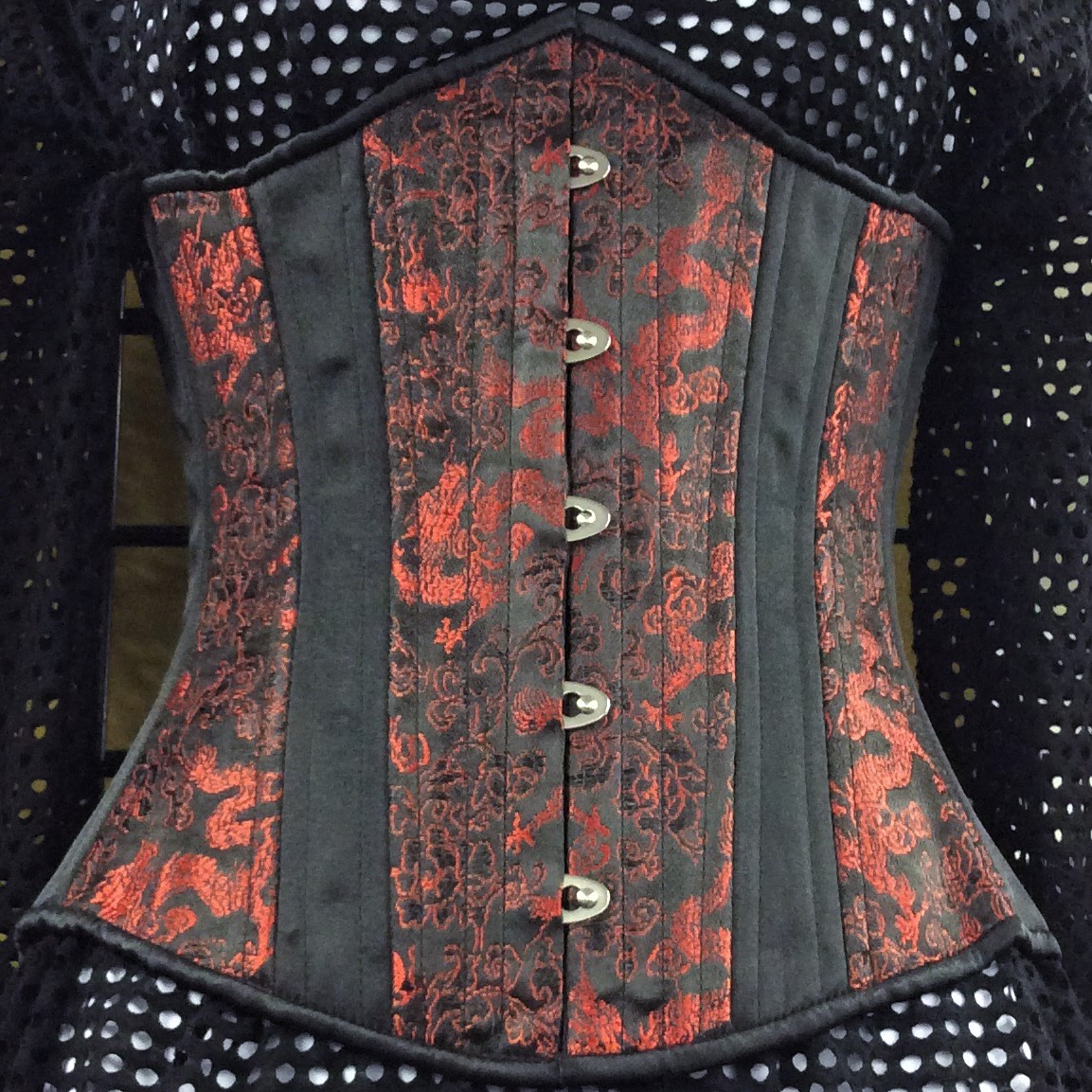 Our corsets are designed to sit right at the hipbone on most wearers, and they have a contoured under-bust line to accentuate and slightly lift the bust area. (Sometimes you may need to scoop as you get tied!). Our corsets are a great place to start if you're just beginning to get into corsetry since they fit the majority of people well and they come in a large array of fashion fabrics, colors, and sizes to chose from!