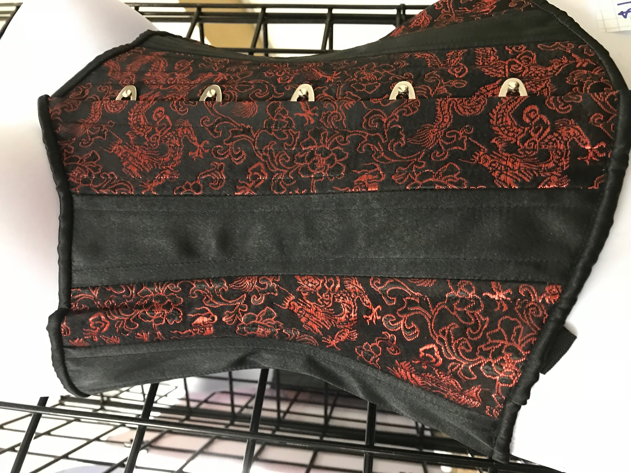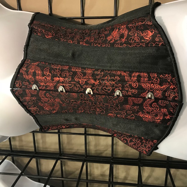 Our corsets have 20 spiral steel bones for comfort and form, and an additional 6 spring steel stays that support the grommets and busk. They have three layers of fabric (two inner layers of high-quality cotton twill for a breathable fit and wicking away any moisture, and an outer fashion fabric). The middle fabric layer is laminated to the outer fabric for added strength and a smoother finish. There is a waist tape for extra support at the waist line. The laces are extra long and very strong for a tight but comfortable fit.