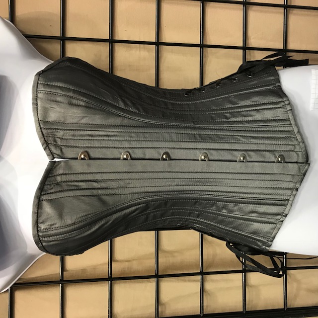 Our corsets have 20 spiral steel bones for comfort and form, and an additional 6 spring steel stays that support the grommets and busk. They have three layers of fabric (two inner layers of high-quality cotton twill for a breathable fit and wicking away any moisture, and an outer fashion fabric). The middle fabric layer is laminated to the outer fabric for added strength and a smoother finish. There is a waist tape for extra support at the waist line. The laces are extra long and very strong for a tight but comfortable fit.