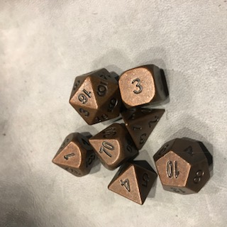 This set of dice includes 7 standard D&D dice in an antiqued bronze.