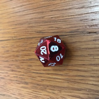 This set of dice includes 7 standard D&D dice in a red electrostatic plated metal.
